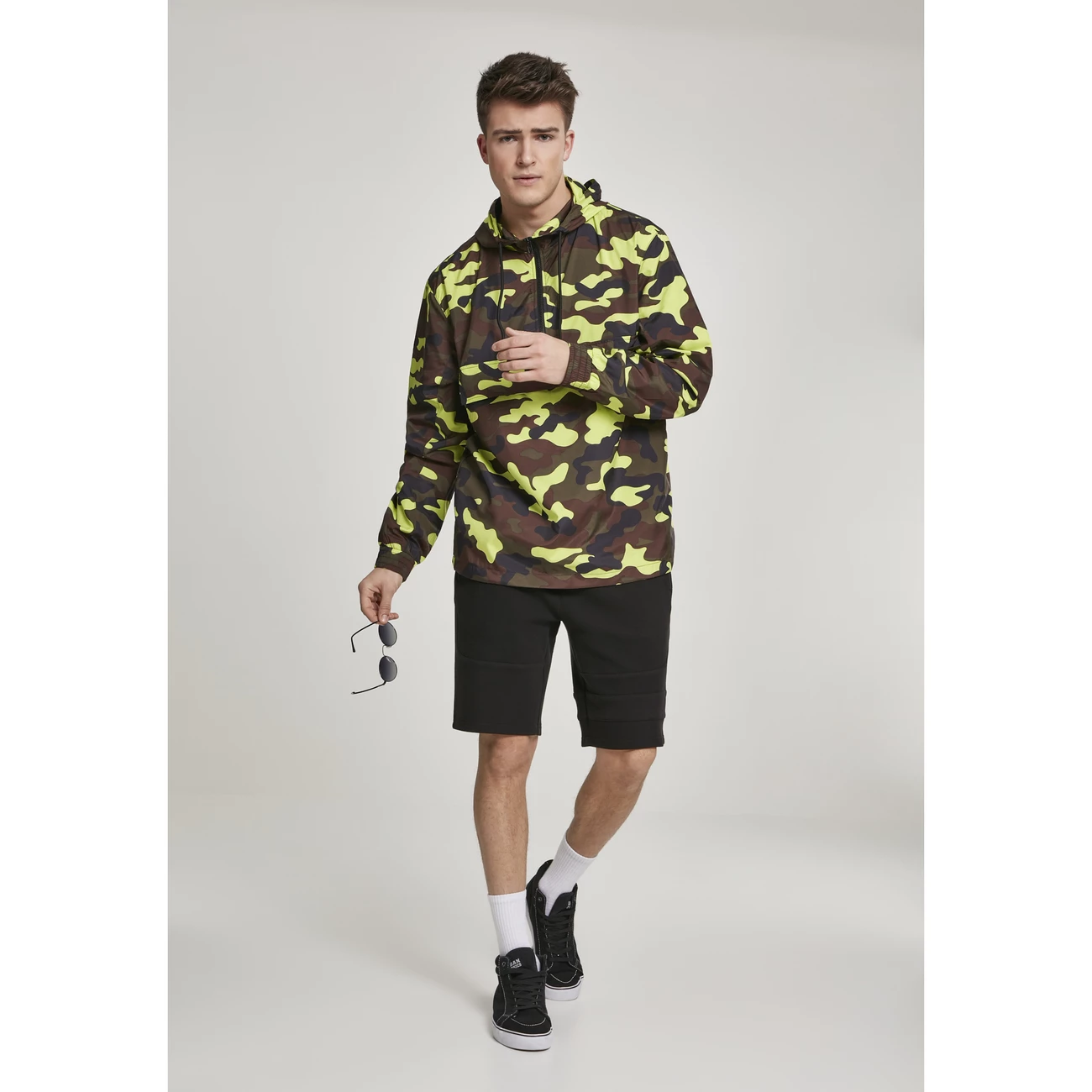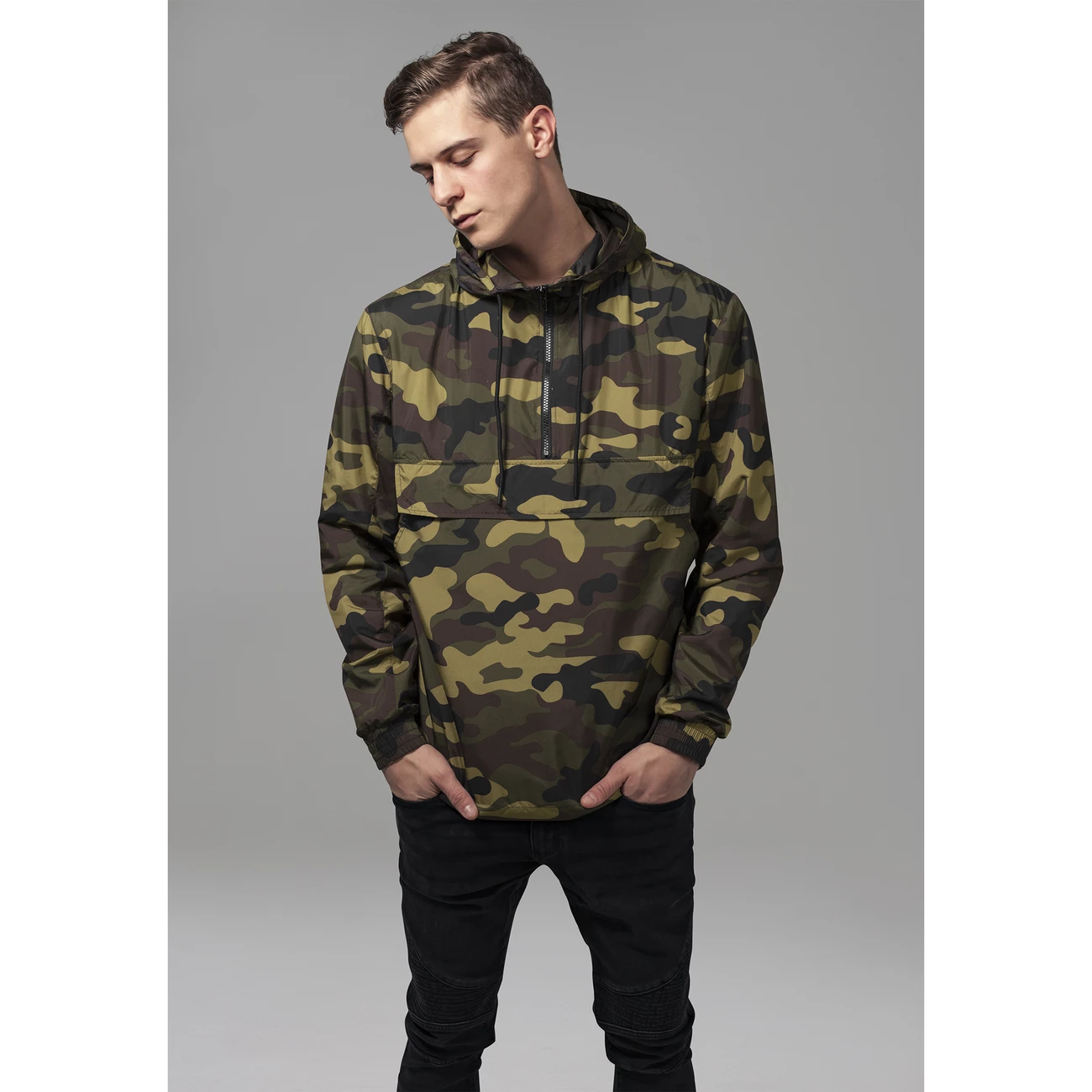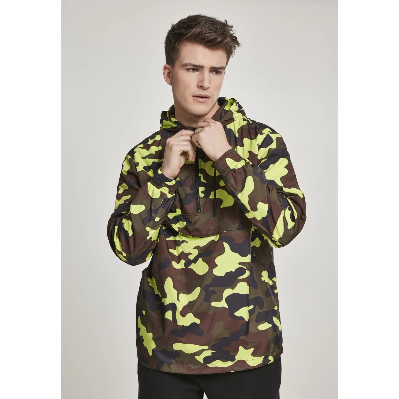 Le vent peut être si ennuyeux. En automne ou lorsque vous êtes au bord de la mer, avoir un coupe-vent est une bonne chose. Le pull-over coupe-vent Camo de URBAN CLASSICS vous protège du vent et vous donne un air très cool. Les poignets sont élastiques pour que l’air froid n’ait aucune chance de se faufiler sous vos vêtements. La capuche sauve votre tête. Grâce au cordon de serrage, le vent ne pourra plus l’enlever de votre tête.Futter 1 : 100% Polyester, Micro Mesh, 130 GSM Futter 2 : 100% Polyester, 230T Taffeta, 70 GSM Oberstoff 1 : 100% Polyester, 50D High F, 78 GSM