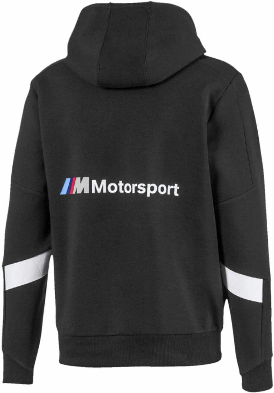 Double tricot. Panneau de manche et coude de couleur noire. Bande imprimée de couleur contrastée à l’articulation du coude. Articulation des manches pour une flexibilité accrue. Cordons de serrage couleur M pour un ajustement parfait. Poignets côtelés asymétriques. Ceinture côtelée. Poches passepoilées. Insigne tissé / en relief BMW Propeller sur la poitrine gauche. Logo PUMA Cat imprimé sur la poitrine droite. Grand imprimé horizontal. M Motorsport à l’arrière, étiquette tissée intérieure BMW M Motorsport.